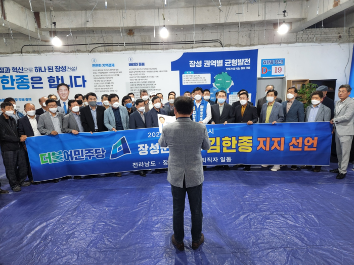또, 장성군 출신 최초로 전라남도의회 의장 및 전라남도 개원이래 최초로 대한민국시도의회의장협의회 회장을 역임하며 지방자치 이념을 제대로 실천하여 능력을 입증한 김한종이 우리가 찾고자 하는 인물이라고 생각한다며, 이에 전남도청과 정성군청 공직자로 근무하고 퇴직한 100인은 장성군민의 자존감을 지켜내고 장성 발전에 작은 힘을 보탤 것이며, 김한종 장성군수 후보를 적극 지지 할 것을 선언했다.