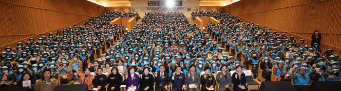 | ▲ 오승록 노원구청장이 14일 오전 서울 노원구 노원구민의전당에서 열린 ‘2025년 구청직영 어르신 일자리 발대식’에 참석해 기념촬영을 하고 있다. (사진=노원구청 제공) |