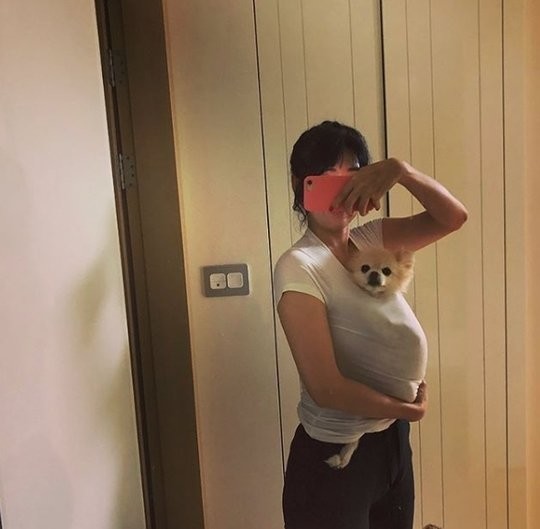 사유리는 지난 5일 개인 인스타그램에 반려견 모모코와 찍은 거울 셀카를 게재했다.