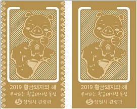 | ▲ 창원시가 2019년 황금돼지 해를 맞아 제작한 ‘부자 되는 황금돼지섬 돝섬’ 책갈피 | ||