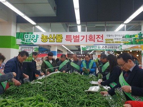 밀양시 무안면 맛나향 고추작목회는 지난 15일과 16일, 대구광역시 중구 탑마트 대구점에서 무안면 맛나향 고추 소비촉진행사를 성황리에 개최했다.