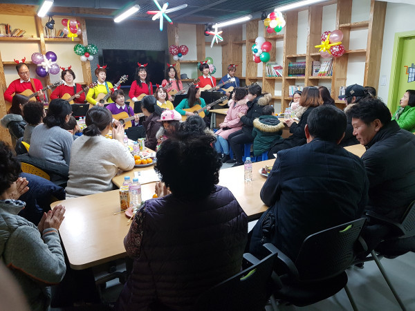 경기 수원시 권선구는 17일 세류1동 다문화 사랑방에서 다문화 가정, 주민자치위원장 등 50여명이 참여한 가운데 '송년 다과회'를 개최했다. 사진은 행사 참여자들이 기타 공연을 선보이는 모습. (사진제공=수원시청)