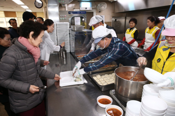 박승원 경기 광명시장은 18일 광명3동에서 우리동네 시장실 운영했다. 이어 박 시장은 광명종합사회복지관을 찾아 노인들에게 따뜻한 점심식사 배식봉사를 진행했다. 사진은 박 시장이 배식봉사를 하고 있는 모습. (사진제공=광명시청)