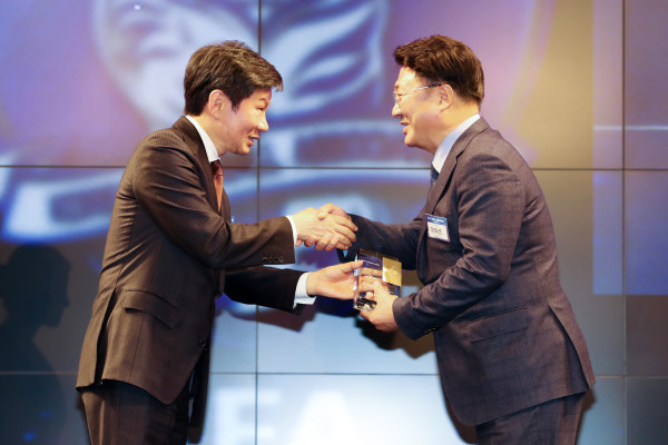 엄태준 경기 이천시장이 18일 서울 JW메리어트동대문스퀘어 호텔에서 열린 대한축구협회 2018 KFA 시상식에서 감사패를 받았다. 사진은 정몽규 대한축구협회 회장(왼쪽)이 엄 시장(오른쪽)에게 감사패를 전달하는 모습. (사진제공=이천시청)