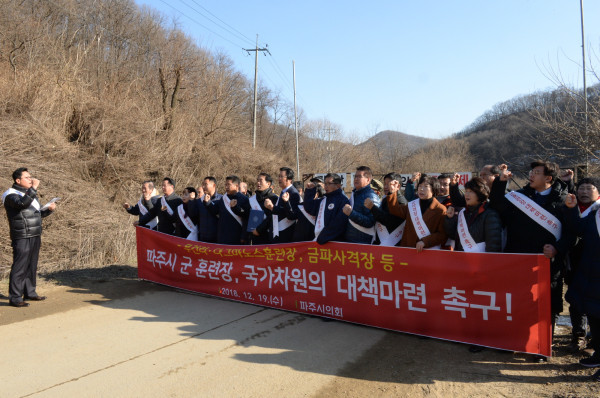 이날 본회의장 결의안 채택 후 손배찬 의장을 비롯한 시의원 전원은 파주시 무건리 훈련장으로 이동해 포사격으로 직접 고통받고 있는 법원읍과 적성면 지역 주민들과 함께 한목소리로 정부와 국방부에 대책마련을 촉구했다.