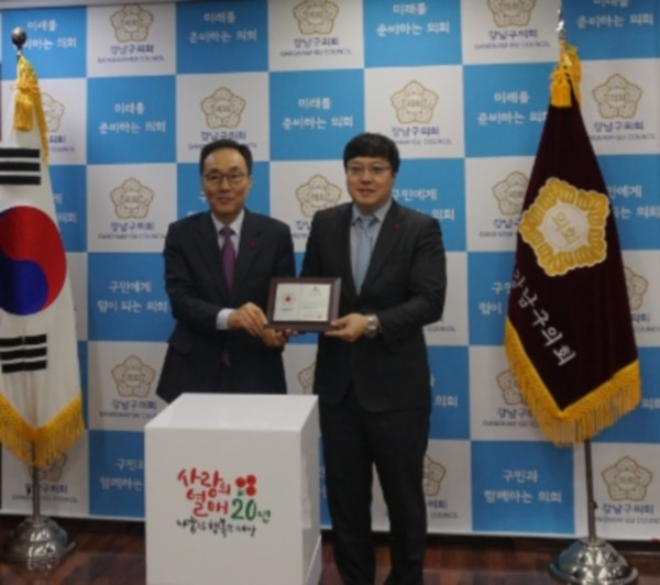 이 의장은 “‘2019희망온돌 따뜻한겨울나기’ 사업이 시작되면서 강남구민들과 구의원들에게 나눔문화 확산 전파를 위해 구의장으로서 솔선수범하는 모습을 보이고자 기부를 결심하게 됐다”고 밝혔다.