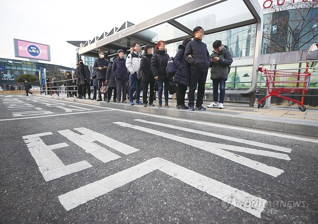 ‘카카오 카풀’ 서비스에 반대하며 택시업계가 파업을 벌인 20일 오전 서울역 앞 택시 승차장에서 시민들이 택시를 기다리고 있다.