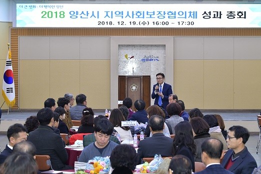 양산시 지역사회보장협의체에서는 시청대회의실에서 140여명의 협의체 위원들을 모시고 한 해 동안 걸어온 발자취를 되돌아보는 2018년 양산시 지역사회보장협의체 성과 총회를 개최하였다.
