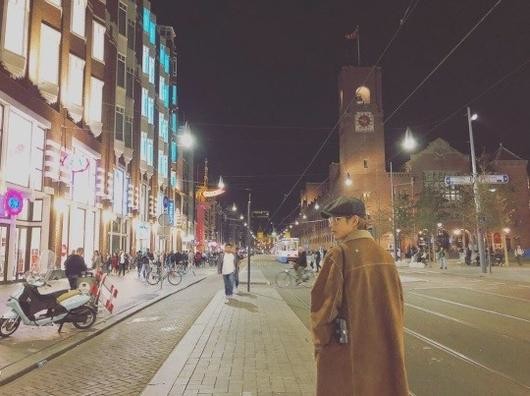 공개된 사진 속 뷔는 갈색 자켓에 검은 모자를 쓰고 네덜란드 암스테르담 거리를 걷고 있다. 어깨에 카메라를 메고 무심한 듯 옆을 바라보는 모습이 마치 화보 같은 분위기를 자아낸다.
