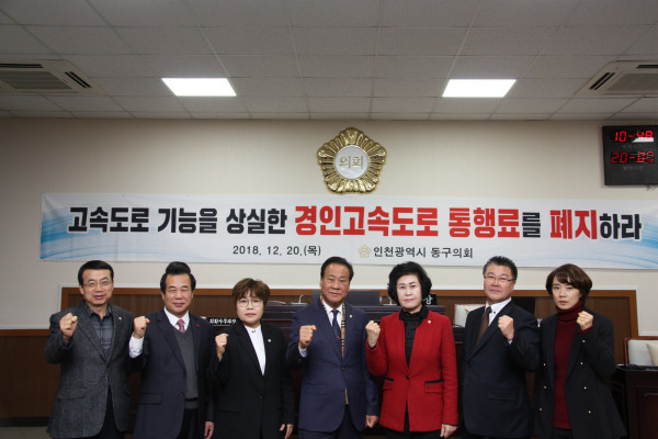 인천시 동구의회 의원들 경인고속도로 통행료 폐지 촉구 결의