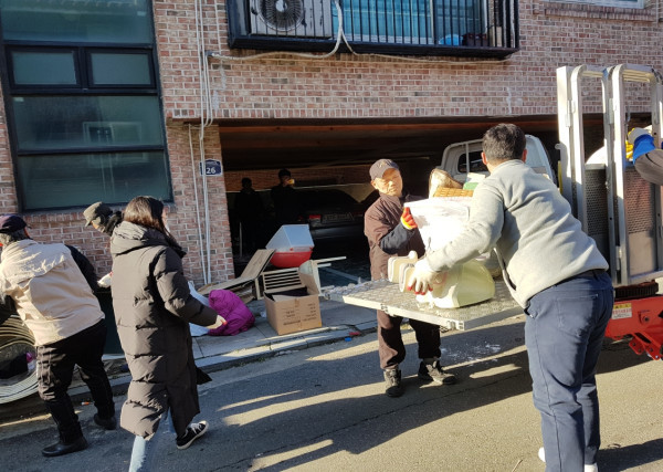 서울 영등포구 영등포본동은 최근 쓰레기집에서 5년 동안 방치된 홀몸가구를 방문해 대청소를 실시했다. 이날 동주민센터 직원들과 자원봉사센터 자원봉사자 등 총 30여명이 참여했다. 사진은 봉사자들이 각종 쓰레기들을 밖으로 운반하는 모습. (사진제공=영등포구청)