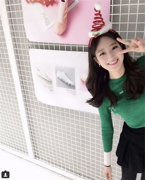 사진 속 주시은 아나운서는 크리스마스 분위기가 물씬 나는 코디를 선보였다. 크리스마스 꼬깔 모자를 쓰고 초록색 상의를 맞춰 입은 채 브이를 그리며 미소 짓고 있다.