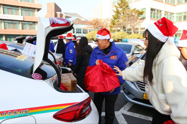 인천 미추홀구와 학산지속가능발전협의회는 최근 ‘해피바이러스 페스티벌’을 성황리에 개최했다. 올해로 5회째를 맞는 이 행사는 산타클로스 자원봉사자가 썰매 차량을 타고 후원물품으로 구성된 선물보따리를 소외된 이웃에게 전달하는 행사다. 사진은 참여자들이 선물보따리를 차에 싣고 있는 모습. (사진제공=미추홀구청)