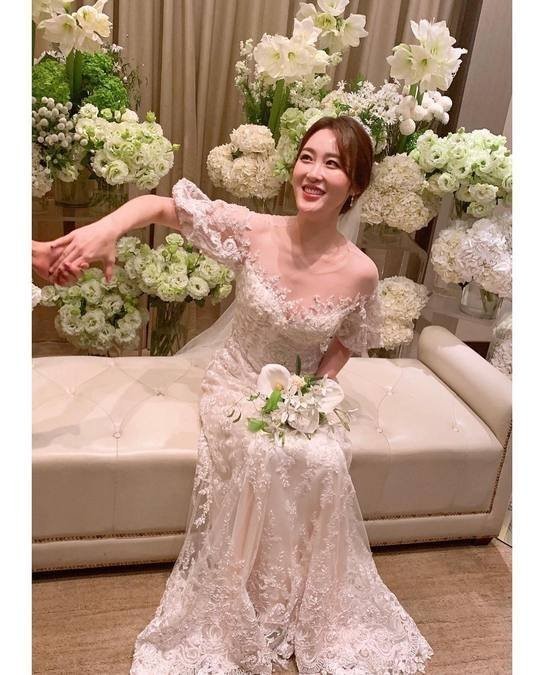 사진 속 신아영은 신부대기실에서 순백의 웨딩드레스를 입고 미소 짓고 있는 있다. 뽀얀 어깨라인을 드러낸 신아영의 단아하면서도 세련된 드레스 자태가 감탄을 자아낸다.