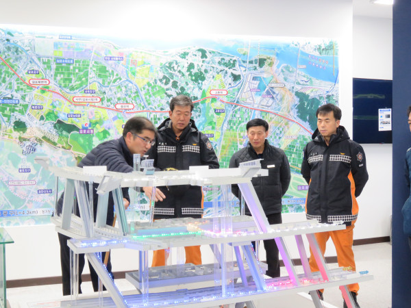 경기 김포소방서가 오는 2019년 7월 개통(예정)을 앞두고 있는 김포도시철도 본사를 방문해 안전한 개통을 위한 현장 안전점검을 최근 실시했다. 사진은 김포도시철도 본사 및 홍보관에서 제반사항에 대한 업무 브리핑을 듣고 있는 관계자들의 모습. (사진제공=김포소방서)