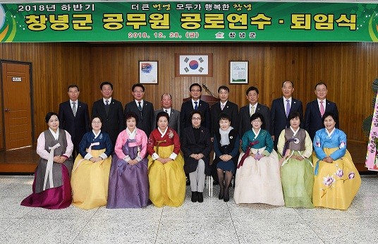 창녕군(군수 한정우)은 지난28일, 창녕군청 대회의실에서 2018년 하반기 공무원 퇴임식을 가졌다.