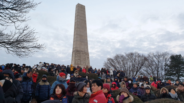 [고양=이기홍 기자]2019년 1월 1일 아침 경기도 고양시 행주산성에서는 1만여 명의 시민들이 모여 해맞이를 하고 새해 소원을 빌었다.