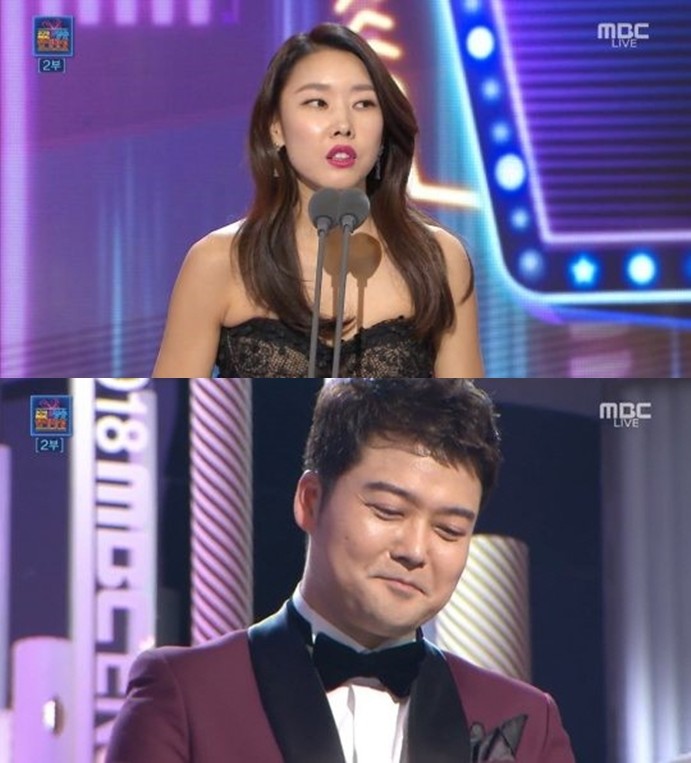 한혜진은 지난해 12월 29일 진행된 ‘2018 MBC 방송연예대상’에서 송은이와 함께 버라이어티 부문 최우수상을 수상했다.