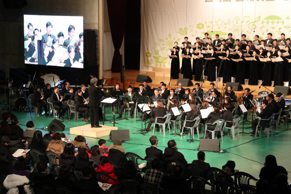 경기 남양주시는 최근 체육문화센터 실내체육관에서 음악과 함께하는 2019년 새해인사회를 개최했다. 남양주 윈드오케스트라와 시립합창단, 시립소년소녀합창단, 소프라노 박혜진씨 등의 공연이 펼쳐졌다. 사진은 오케스트라 공연이 진행되는 모습. (사진제공=남양주시청)