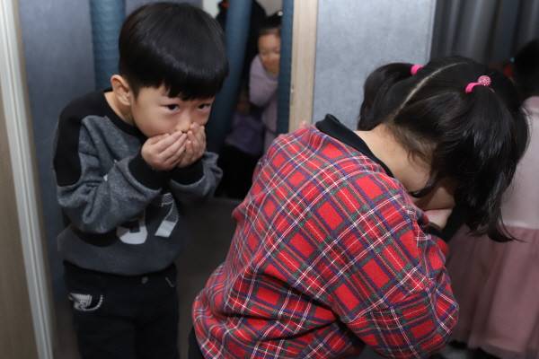 서울 도봉소방서는 최근 지역내 위치한 푸른나무어린이집 원아와 교사를 대상으로 소방안전교육을 실시했다. 이날 교육은 119신고 요령, 물소화기 체험, 화재대피 체험 등으로 진행됐다. 사진은 아이들이 화재대피 체험을 하는 모습. (사진제공=도봉소방서)