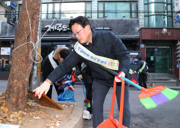 채현일 영등포구청장, 직원들과 함께 거리 청소