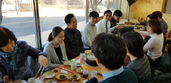 경기 수원시 권선구 금곡동은 3일 지역사회보장협의체와 간담회를 열었다. 새해 들어 처음으로 개최한 지역사회보장협의체 정기회의 후 이뤄진 간담회에서는 지난 한 해 금곡동 발전을 위해 적극 참여해 준 위원들을 격려하고 새해를 맞아 덕담을 나누었다. 사진은 참여자들이 이야기를 나누는 모습. (사진제공=수원시청)