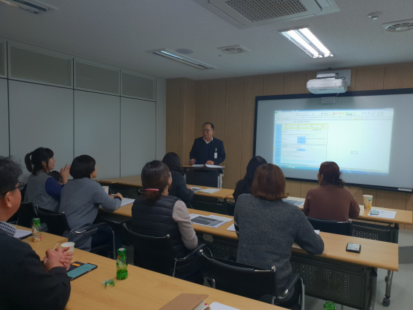경기 김포시 토지정보과에서는 7일 시 민원콜센터에서 콜센터 상담원을 대상으로 방문 교육을 실시했다. 사진은 토지정보과장이 직접 토지정보과 업무 전반에 대한 설명을 시작으로 평소 민원 문의가 많은 부동산 실거래신고 및 검인, 지적 전산자료 조회 신청 등에 대해 설명하고 있는 모습. (사진제공=김포시청)