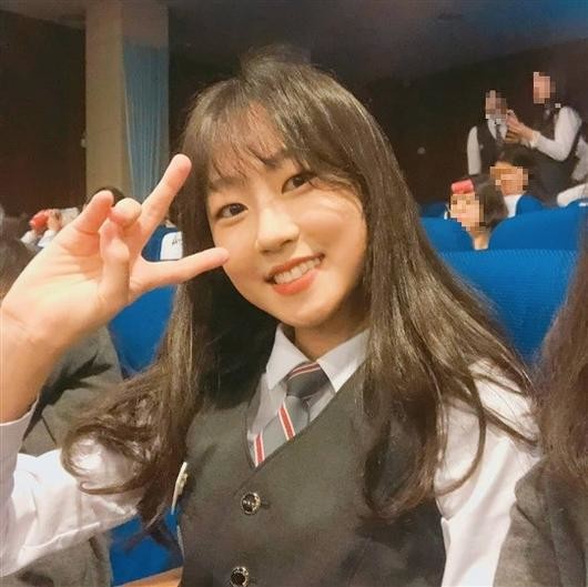 공개된 사진 속에는 김환희가 교복을 입고 의자에 앉아 셀카를 찍고 있는 모습이 담겨있다.
