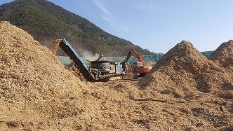 파쇄작업은 경상남도와 투자협약 체결한 경남 고성군 동해면 소재 ㈜신영포르투에서 직접 대형파쇄기와 우드그랩를 동원하여 작업하고 있으며, 금년 3월까지 약 1,800톤 정도의 목재칩과 톱밥을 생산할 계획이다.