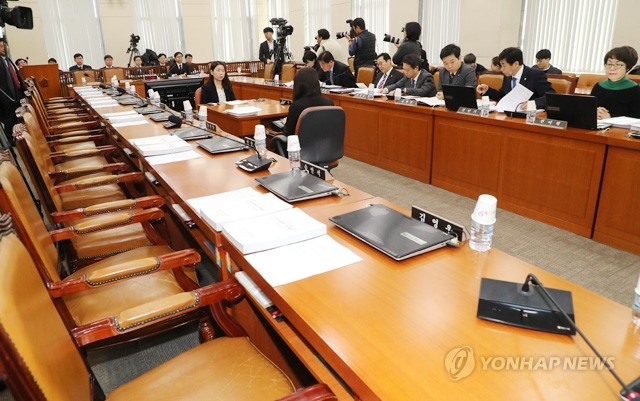 9일 오전 열린 국회 행정안전위원회 조해주 중앙선거관리위원회 위원후보자 인사청문회에 자유한국당을 비롯한 야당 의원들이 불참해 의석이 비어있다. 이날 야당 소속 의원들은 ‘조 후보자가 지난 2017년 대선 때 문재인 캠프에서 활동했다’고 주장, 후보적합성 여부를 논하며 불참했다.