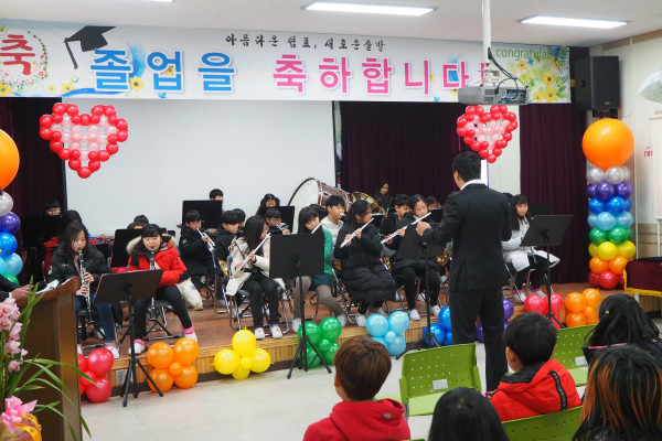 경기 이천시 장호원읍에 위치한 대서초등학교는 9일 '관악으로 미래의 꿈을 선사하는 아름다운 졸업식'을 진행했다. 사진은 이날 졸업생들이 관악 연주를 선보이고 있는 모습. (사진제공=이천교육지원청)