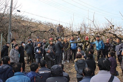 | ▲ 사진설명: 단감 동계 정지․전정기술 교육 실시 장면 | ||