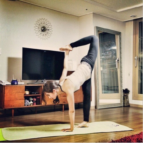 사진 속에는 몸매가 드러나는 운동복을 입고 요가 삼매경에 빠진 유리의 모습이 담겼있다. 군살 없는 완벽한 S라인 몸매와 사랑스러운 미모가 보는 이의 눈길을 사로잡는다.