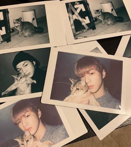 폴라로이드 사진 속 강다니엘은 반려모의 얼굴에 자신의 얼굴을 맞대고 있다.