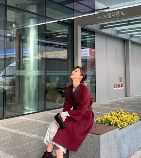 공개된 사진 속엔 텀블러를 손에 든 하연주가 고개를 들고 눈을 감고 있다.