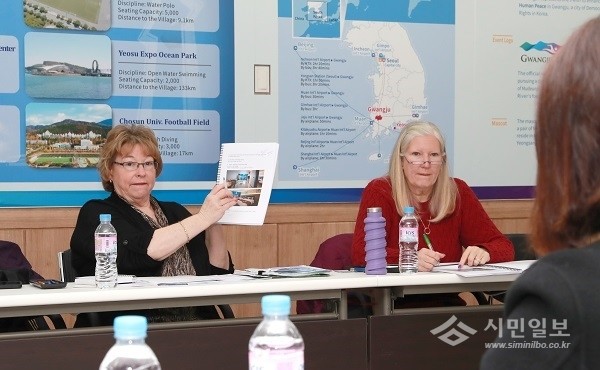 2019광주세계수영선수권대회조직위원회(위원장 이용섭 광주광역시장, 이하‘조직위’)에 따르면, 미국 대표팀 제리 매쉬번(Jeri Marshburn) 선수단장과 베티 헤이즐(betty hazle) 대표단 자문관 지난 14일 조직위를 방문해 각 분야별 실무 담당자와 회의를 실시하고, 수영대회가 열리는 선수촌과 경기장 현장 등을 점검했다.