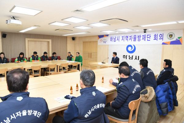 경기 하남시 지역자율방재단은 15일 시청 상황실에서 단원 40여명이 참석한 가운데 ‘지역자율방재단 연합회의’를 진행했다. 자율방재단은 한파대응 캠페인 활동 및 위험시설에 대해 해빙기 예찰활동을 하게 된다. 사진은 회의가 진행되는 모습. (사진제공=하남시청)