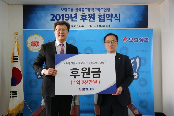 보람상조는 1억 2000만원을 후원했으며, 이는 한국중고등학교탁구연맹 소속 선수들과 지도자들의 실력 향상을 위해 장학금 및 격려금을 비롯해 각종 해외대회 출전 지원 용도로 쓰인다.