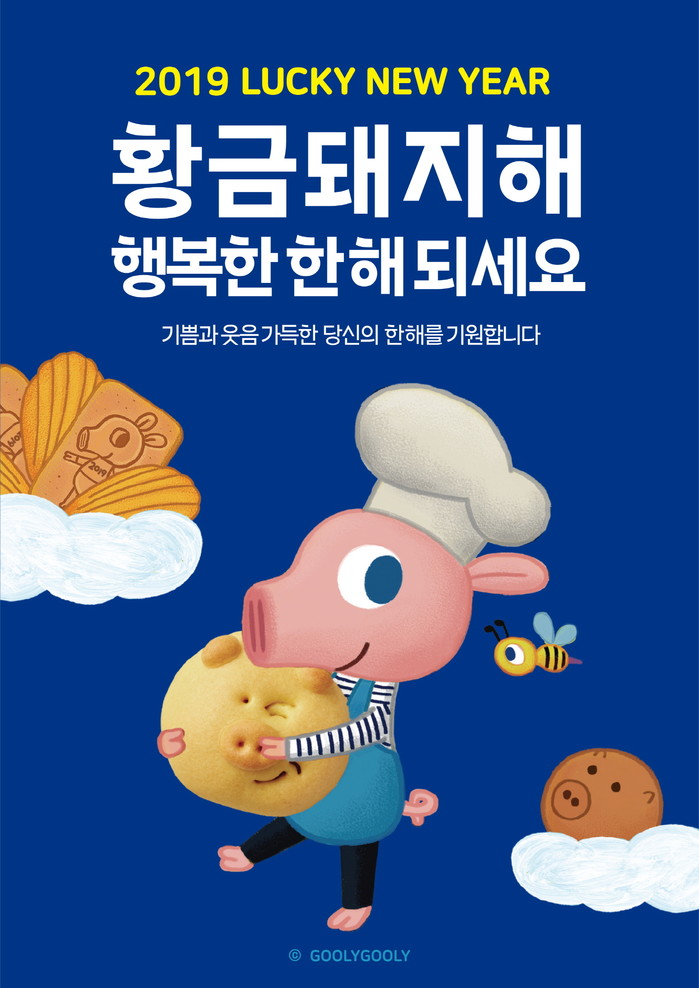 대표 제품인 ‘행복한 돼지 만주’는 파인애플 잼을 넣은 돼지 모양의 만주 선물세트로 만주 하나하나에 돼지의 웃는 표정을 표현한 것이 특징이다. 이 외에도 △’굴리굴리 프렌즈'의 돼지 캐릭터인 ‘데이지’가 그려진 패키지에 부드러운 마들렌을 담은 ‘행복한 돼지 마들렌’ △딸기, 플레인 두가지 맛으로 바삭하게 구운 쿠키에 ‘데이지’를 인장으로 새겨넣은 ‘행복한 돼지 쿠키’ △굴리굴리 캐릭터 머랭을 케이크 위에 올린 신년 케이크 ‘행복해도 돼지~2019’ 등도 선보인다.