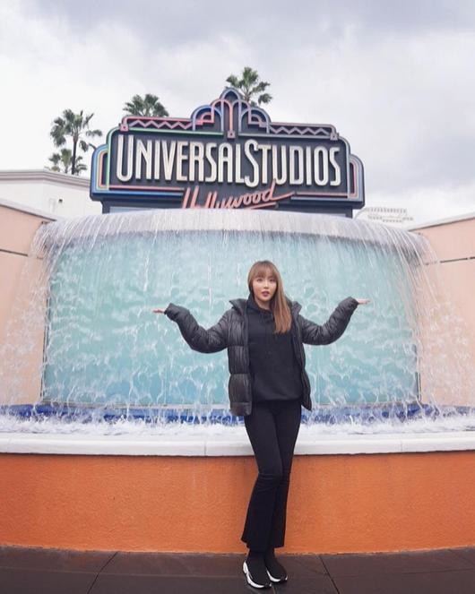 16일 홍진영은 자신의 인스타그램에 "유니버셜 스튜디오 오면 이 자리에서 한 번씩 찍어야 한다고 해서 냉큼 찍어봤습니다만. 저 사진 찍을 때까진 나름 괜찮았는데 비가"라는 글과 함께 여러 장의 사진을 게재했다.