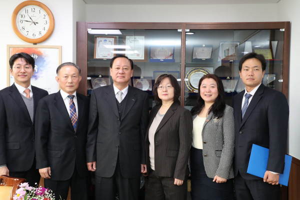 마포구는 최근 법률상담 및 대리신고 공익제보자를 보호·지원하는 안심변호사단을 구성했다. 안심변호사단은 건강, 안전 등 분야별 총 5명의 변호사로 구성됐다. 사진은 유동균 구청장(왼쪽에서 세번째)과 안심변호사단이 기념촬영을 하는 모습. (사진제공=마포구청)