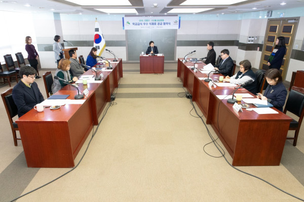 서울 은평구가 최근 기획상황실(본관 6층)에서 최종평가회를 통해 선정된 수산물 공급업체와 학교급식 발전을 위한 ‘학교급식 우수 식재료 공급 협약식’을 개최했다. 사진은 협약식 진행 모습. (사진제공=은평구청)