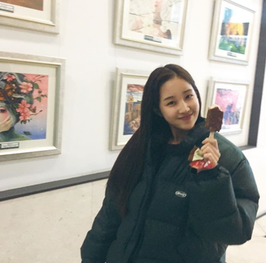 사진 속 박보람은 두꺼운 패딩으로 완전 무장 하고 아이스크림을 들고 있다. 그는 어린 아이같이 웃으며 발랄함을 뽐냈다.