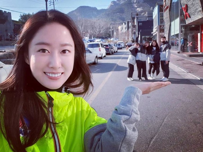 공개된 사진속 연두색 집업을 입은 전혜빈의 모습이 담겨 있다.