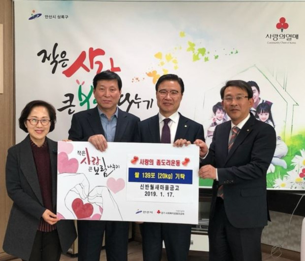 안산시 신반월새마을금고, 상록구청에 쌀 기탁