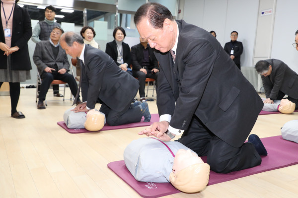 심폐소생술 교육 체험하는 구청장
