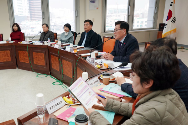 서울 동대문구는 21일 지역 49개 초·중·고교 학교장을 초청해 ‘2019년 초·중·고 학교장 간담회’를 개최했다. 이번 간담회는 어린이·청소년이 행복한 으뜸 교육도시 조성을 위해 마련된 자리로 '2019년 동대문구 교육지원사업 보고', '교육정책 토의 및 건의사항 수렴' 등이 진행됐다. 사진은 유덕열 구청장이 교육현안에 대해 설명하고 있는 모습. (사진제공=동대문구청)