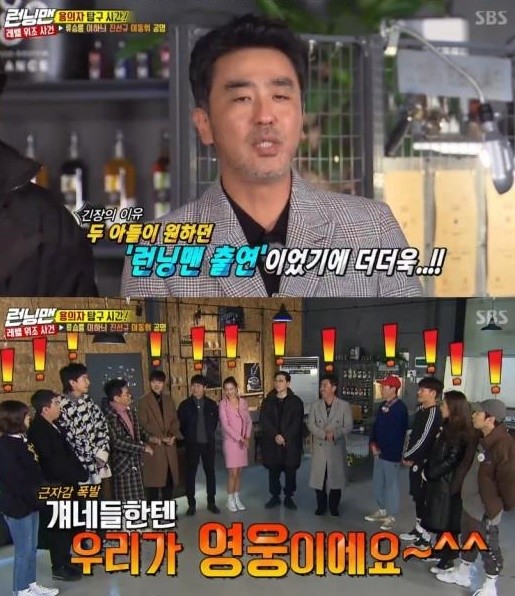류승룡은 “긴장 때문에 한숨도 못 잤다”라며 “‘런닝맨’ 출연이 두 아들의 소원이었다”라고 소감을 밝혔다. 이에 지석진은 “그 애들에겐 우리가 영웅이다”라는 발언으로 야유를 샀다.