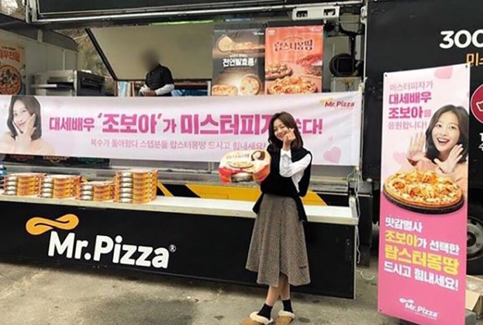 최근 조보아는 자신의 인스타그램에 “직접 촬영장에 찾아와주시구 우리스텝분들께 정성스레 #랍스터몽땅 피자를 구워주셨어요오 힝.. 맛있고, 따뜻한 응원 감사합니당 !!”이라는 글과 함께 사진을 게재했다.