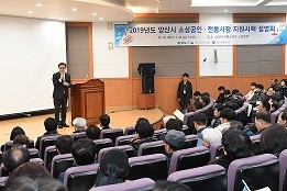 양산시는 지난 23일 양산문화예술회관에서 지역 소상공인 및 전통시장 상인 200여명이 참석한 가운데「2019년 소상공인·전통시장 지원시책 설명회」를 개최했다.
